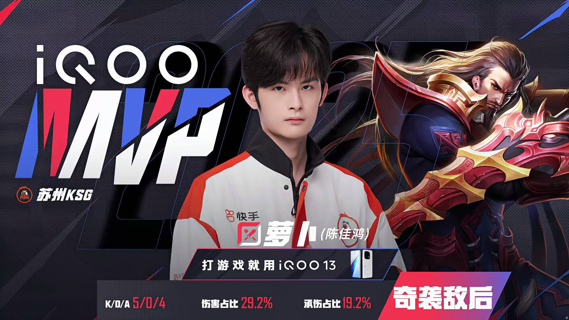 这场比赛第一局KSG的BP就很大胆,直接给JDG放了个巅峰对决阵容,边路还是JDG没舍得选,才拿了个狂铁。JDG的阵容很强,一度拿到了比较大的优势,但在压高地的时候,萝卜的曹操出手了。绕了一整场终于被他绕到了,一闪进场逼出绝意的链子,妖刀大招封走位。萝卜还留了两段一技能可以继续追击,还是切死了绝意。另一边妖刀落地击杀清融,曹操带着红buff继续砍,杨戬狗中了元坦。元坦一点链子杨戬直接上,曹操击杀了无畏。轻语的狂铁一直跑到了自家蓝区,但依然被萝卜和句号追四,KSG打了一波一换四。